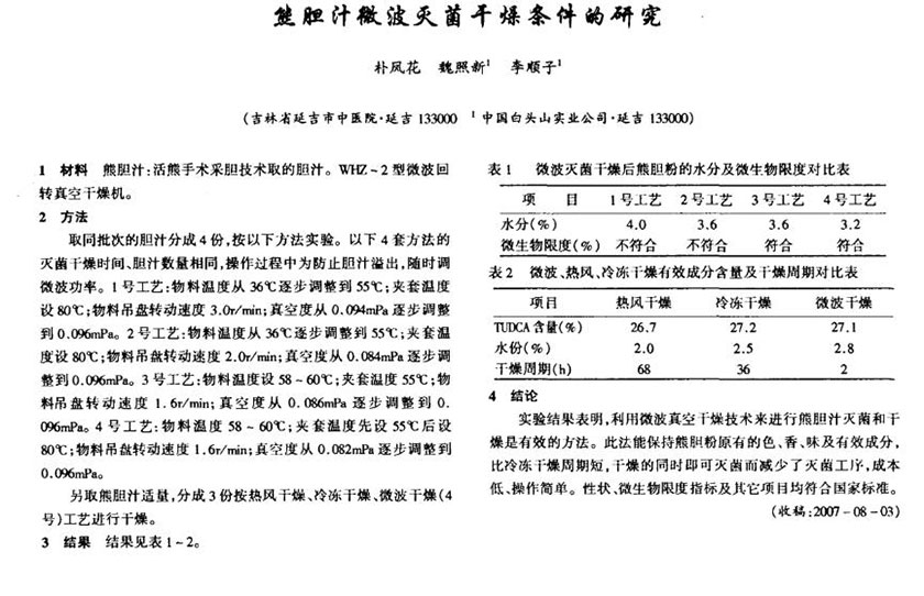 熊胆粉微波真空杀菌设备是工作室的气压降到大气压以下,从而使水的沸点低于100℃,同时采用微波能来向物料提供所需的温升和汽化热量。除具有低温干燥不破坏食品的营养成分和药材的药性成分保持其原有风味外,还具有杀菌保鲜作用。常规真空干燥法传导速度缓慢,效率低,温度难以控制,并且物料存在温差。热敏性物料在常温条件下课快速干燥、脱水、浓缩,物料脱水温度可控制在60℃以下。与常规工艺设备功耗相比节约能源30%-90%,此外,也可用于许多易氧化物料的干燥、脱水和浓缩处理。微波真空干燥设备是一种理想的新型制药行业干燥设备。
